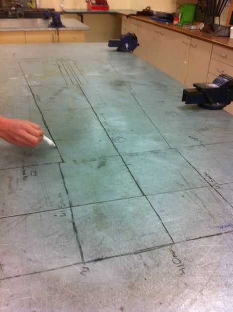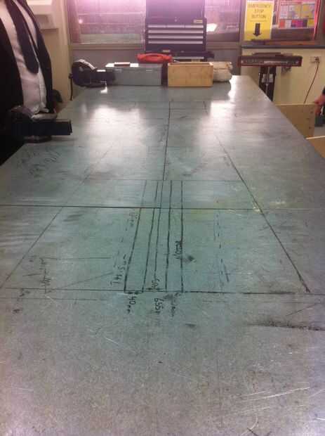 Iniciado el proceso de diseño, midiendo el tamaño de nuestro kart en un pedazo largo de madera contrachapada y sacó las mediciones que hemos querido el kart para ser. Después de que terminamos de dibujar el contorno de kart subimos las piezas del lado derecho y establecidas en el contorno. Entonces tuvimos que hacer el rey pins y soldar con autógena el marco juntos. Necesitamos el rey pins para que sepamos lo que el ángulo de dirección tuvo que ser.