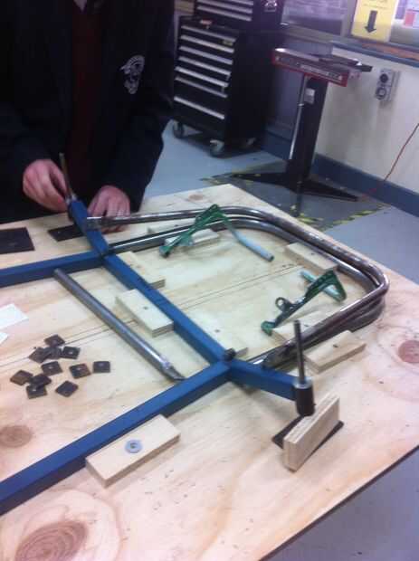 Por supuesto el Go Kart va a necesitar más que un marco así que tuvimos que colocar una columna de dirección y rueda, aceleración y palancas de freno, cabecillas y ruedas y otras baratijas de knick poco también hacen que el kart funciona. Construimos la columna de dirección con un tubo metálico de 25mm.