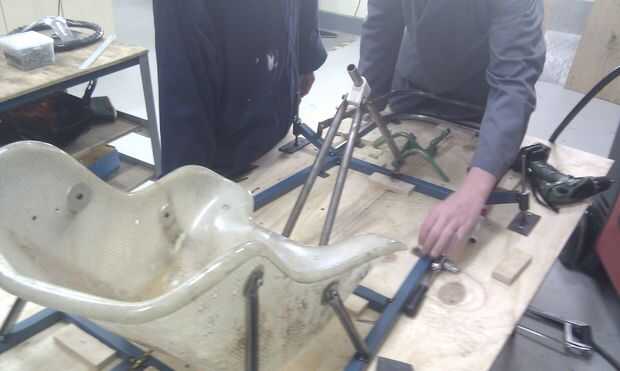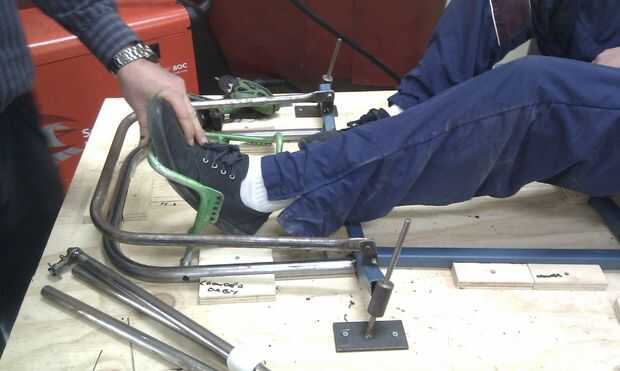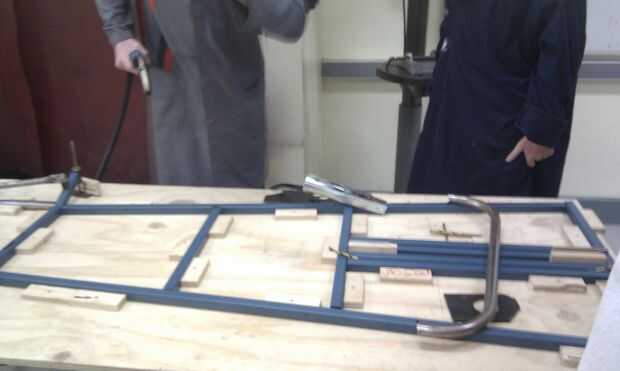 Al soldar con autógena el marco lo viró todo juntos y comprobar si todo estaba correcto antes que sueldan todo correctamente. En unos lugares tuvimos algunas lagunas por lo que los llenó con un poco de metal hueco que fue soldada con autógena en el boquete.