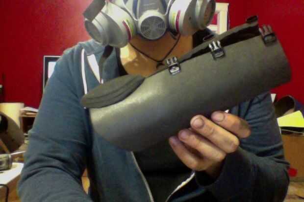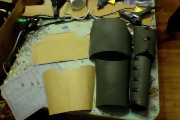 4) Gogo tiene estas piezas codo poco... En capas de 3 piezas de espuma dremelled juntos, en un ángulo y luego lo pegado a los extremos de las piezas de antebrazo (Foto 3 y 4)