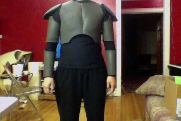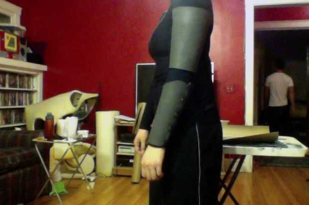 3) ya que el papel es en el antebrazo, puede cortar para caber su brazo bastante ajustado. Esto es exactamente lo que hiciste con los lados del pecho y la espalda. quieres una buena costura limpiarla.