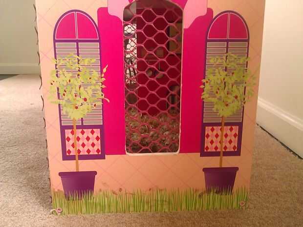 Adhesivo caliente ~ en el interior de las ventanas de la casa de muñecas la malla plástica por lo que no puede escapar a su criatura. El tubo morado de descendiendo de nivel 3 al nivel 2 fue comprado en tienda de mascotas local. Esto es necesario para que Lucy pueda elegir su nivel de chill en. Además, hay un ascensor en el lado derecho de su casa, que va desde el nivel 1 al nivel 2. LE ENCANTA MONTAR A CABALLO SU ASCENSOR!