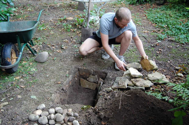 NOTA: En este punto usted puede asegurarse de que cualquier vecinos nosy etc. no tienen la idea equivocada sobre este agujero en el suelo que está excavando; búsquedas de la policía y barbacoas raramente mezclan!