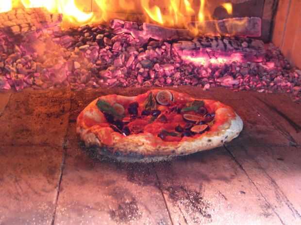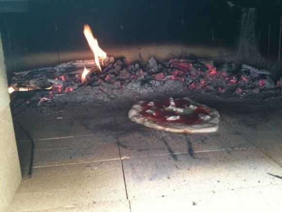 Deslícelo en el horno con un peeling (leer mi writeup sobre Cómo hacer una pizza perforada Pele). Mantenga sus ojos en él, aunque éste cocina mucho más rápido que el horno de casa hace. Unos 45 segundos en querrá volver a girarla. Le dan otro giro unos 45 segundos. 30 segundos después de que, casi listo.