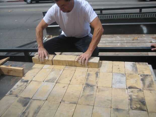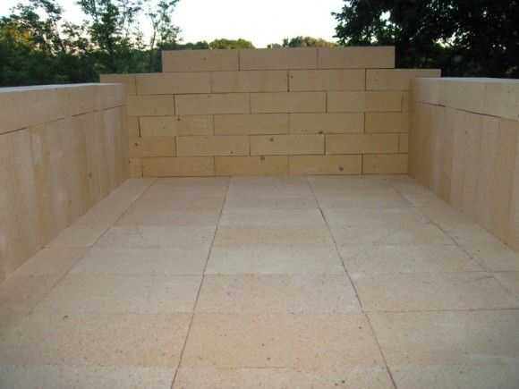 Encima la primera capa, empezar a trazar los firebricks en planta cuadrada que se amplia 5 ladrillos de 10 ladrillos de profundo. Si tus firebricks no son de tamaño estándar, desea que la superficie cuadrada y cerca de 4'x 4'. Corta unas pocas pulgadas es aceptable.
