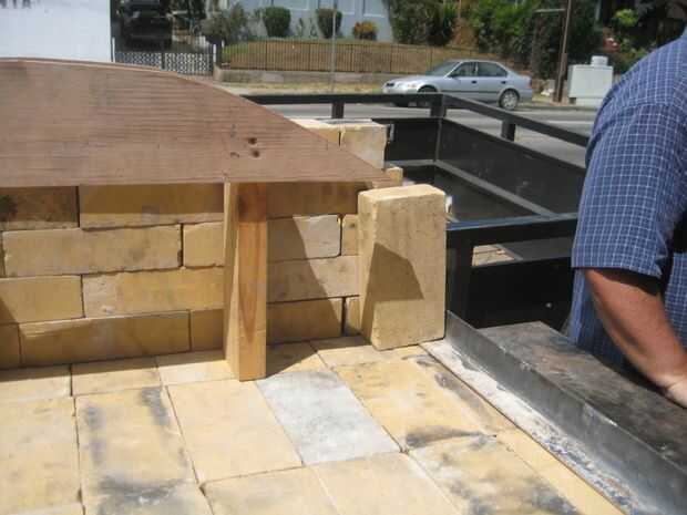 Montar las paredes laterales por ladrillos de pie de lado, colocado sobre el ángulo de hierro que les corre a lo largo del piso. A partir de la parte posterior, poner trece ladrillos a cada lado (ver fotos para el posicionamiento). Añadir una capa de ladrillos por su lado encima de esa capa...