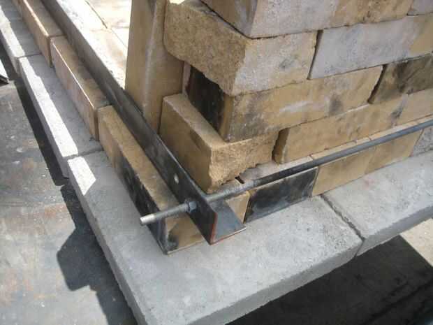 Una vez que las partes en su lugar, puede poner las otras dos piezas de ángulo de hierro encima de los ladrillos y deslice la varilla roscada a través de los agujeros. Tornillos tuercas en lugar pero no bloquearla sin embargo, en caso de tener algún ajuste para hacer.