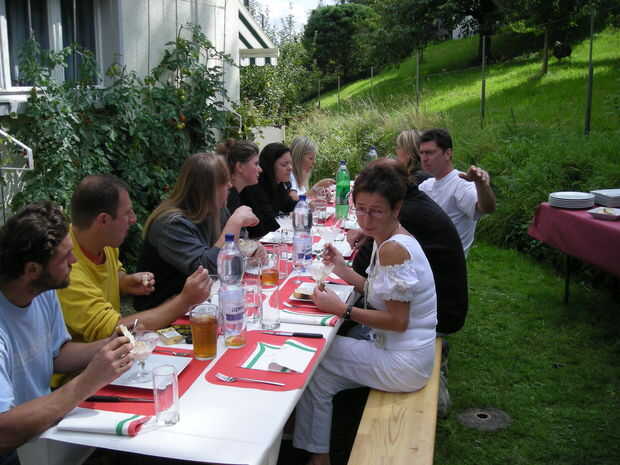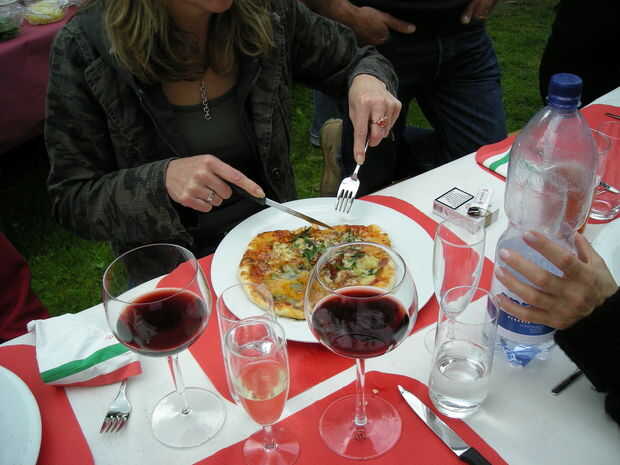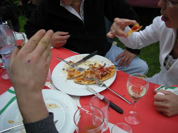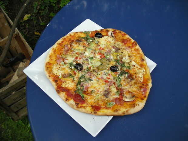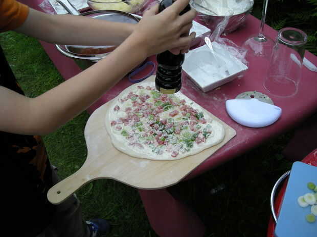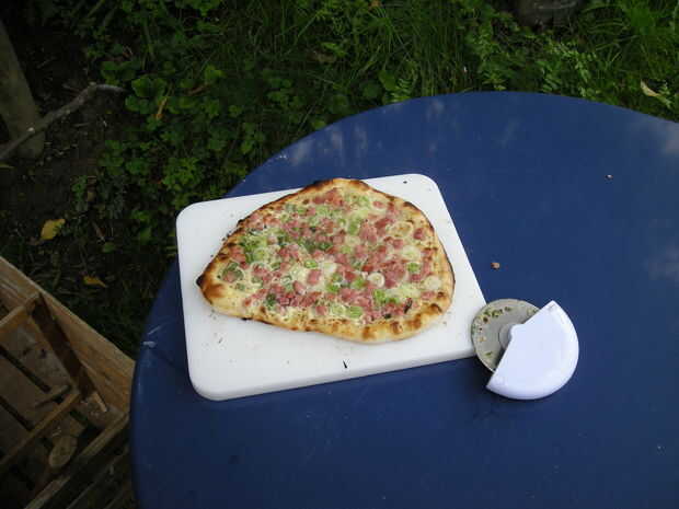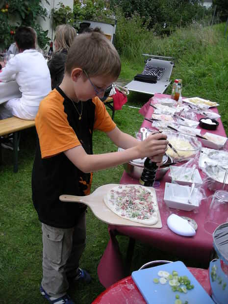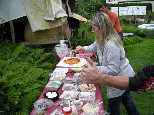 Creo que habla por sí misma, lo que un horno puede ser bueno para el. Fue una reunión muy agradable. Las pizzas salieron muy bien, el flammenkuchen demasiado. Primero vimos que todo el mundo tenía una pizza, así que el hambre primero fue acallado. Bueno, en realidad, fue un cóctel antes de camarones, unos antipasti poco y pan, así. Luego empecé a hacer de flammenkuchen y cortarlas en rodajas pequeñas, por lo que todo el mundo podría tomar tanto como ellos querían. Más tarde tuvimos algunos café y torta. Todavía más tarde, algunas más flammenkuchen y pizza. Como se puede ver, tuve una ayuda que sazona con pimienta de un chico joven. En algún momento aprenderé los de pizza y de flammenkuchen agradable y redondo, pero mientras tanto sólo sabor.