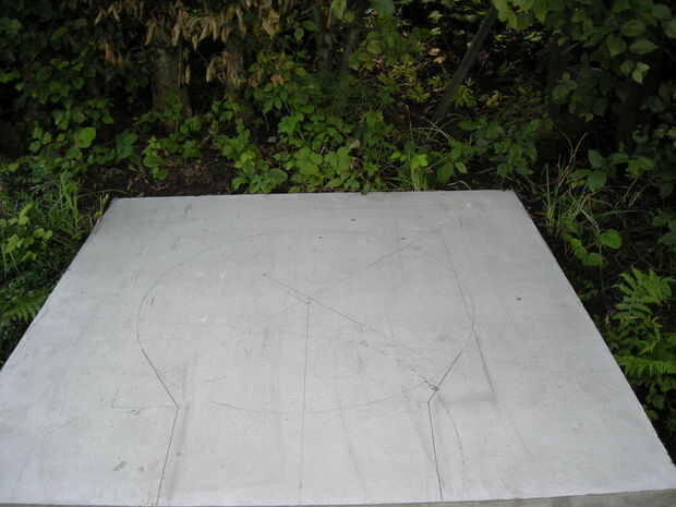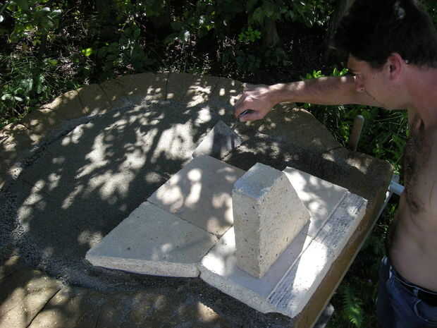 Bosquejó el diseño en mi placa de hormigón, para crear mi fundación. Si tienes otra fundación, no necesita hacer este paso, puesto que ya tienes tu sandbed para poner sus firebricks en.