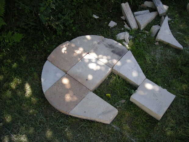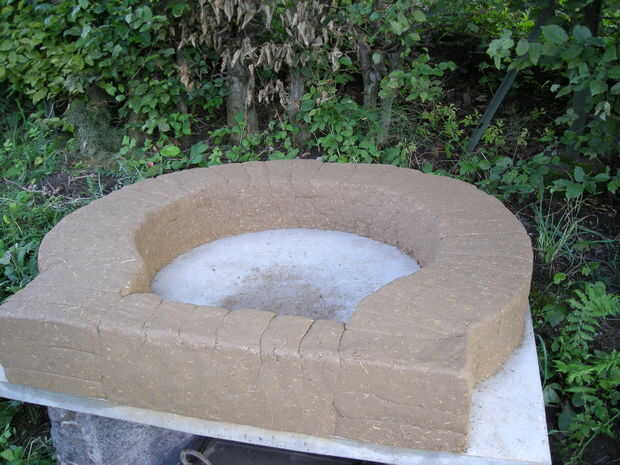 He apoyado a los ladrillos primero a ver cómo arreglan. Ya que yo quería mi firebricks "flotar" en el sandbed, tuve que cortar a la forma. Usé una esmeriladora de disco para cortar a la forma, yo suelo bajar alrededor de 6 discos. No tienes que hacerlo de esta manera, en los hornos más pequeños apenas construido el ovenwalls sobre los firebricks.