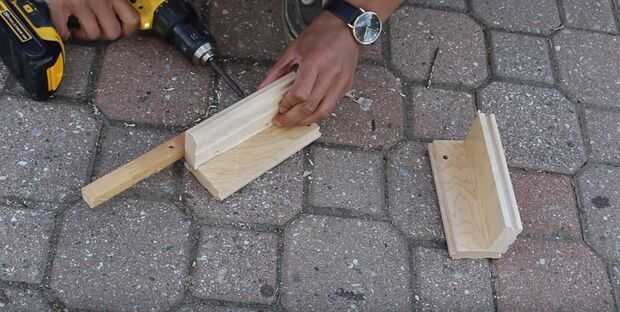 Ahora construir los soportes para los motores. Esto se utiliza para sujetar los motores contra las ruedas. Construirlo para que sea lo suficientemente larga para mantener el eje de un motor contra la rueda, mientras que el extremo posterior se utiliza como punto de pivote. También Coloque un pedazo de madera o pasador que se pega el extremo. Esto se utiliza para sujetar un elástico de.