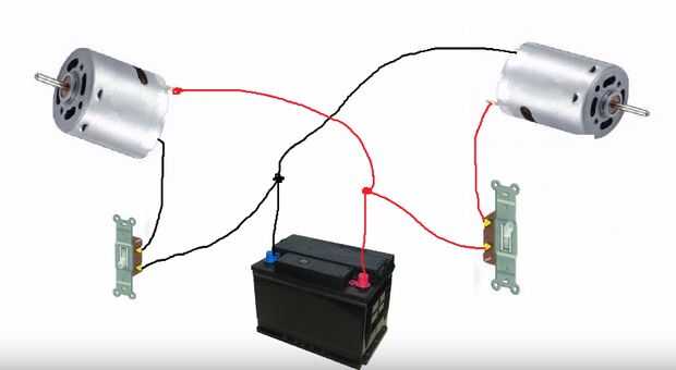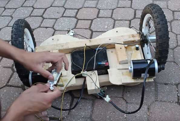 Luego conectar la batería para los 2 motores en paralelo y agregó un interruptor de casa en el medio para que cada motor puede ser controlado por separado. Adjunto está el diagrama del cableado como se instaló.
