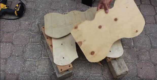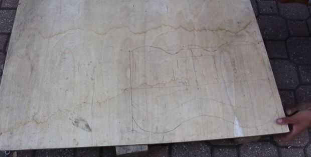 A continuación recortar el marco de 2 piezas delgadas de madera contrachapada y también cortar el marco de la pieza más gruesa de la madera contrachapada. Entonces debe tener 3 hojas de madera contrachapada de igual tamaño. La forma del marco no importa y sólo necesita ser lo suficientemente amplia como para adaptarse a sus pies y una batería.