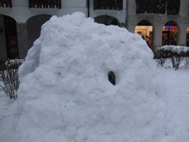 un poco hace tiempo, y vive en Chamonix, yo y un amigo decidió construir un iglú, había bastante nieve y no tenía ganas de coger el autobús para ir a snowboard, esto es lo que logramos, un impresionante iglú, suficiente para vivir, si no tuviéramos un cálido acogedor apartamento a pocos metros.