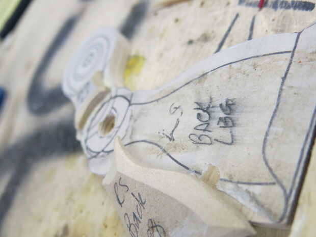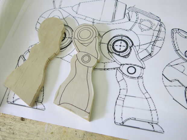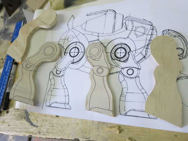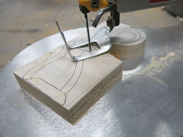 Nos imprime el marco de alambre del esbozo en el tamaño y pegué piezas en capas 5/8, cortado con una sierra de contornear. Tina, corta las piezas de armadura acolchada de mdf y había pegado en las patas.