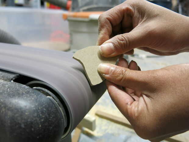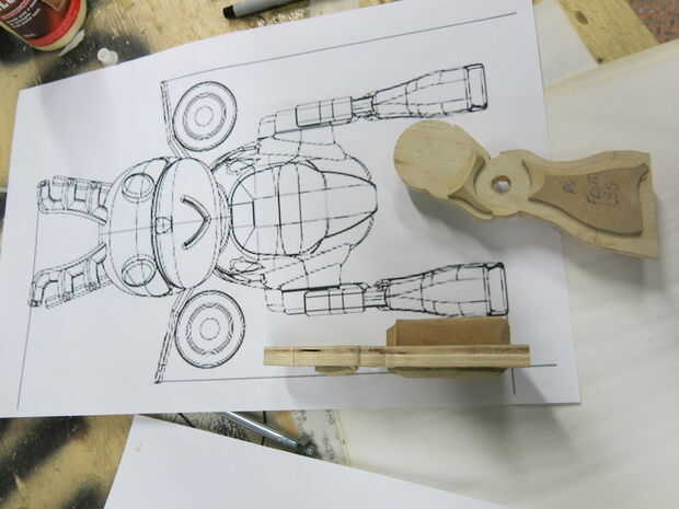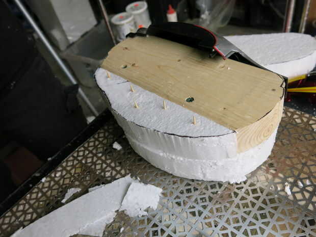 El torso era una pieza en forma de 2 x 4 (necesita esto para tapar las piernas y el cuello en más adelante). Tina había pegado espuma en 2 x 4 y formado por comparación con la impresión.