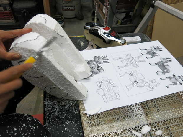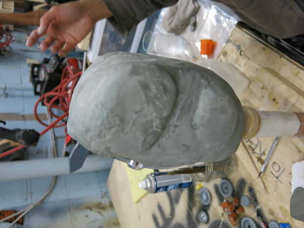 De todos modos, cubrimos las piernas y el torso en él y entonces Tina pasó a formar (ella es mucho mejor que estoy en escultura) de la ciudad. Ella sólo mantiene comparando la pieza para la impresión, luego a la pierna opuesta y simplemente siguió trabajando en él hasta que parecían fabricados. Me impresionó bastante, si lo me permiten.