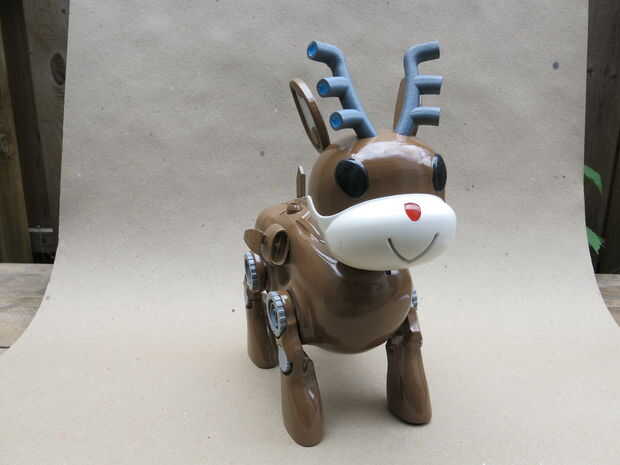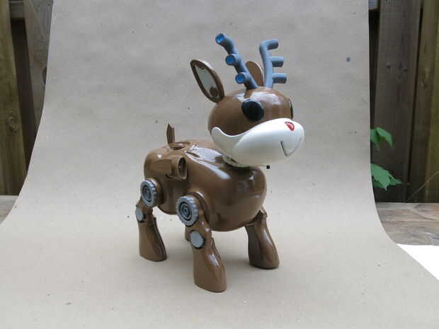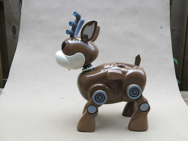 este video muestra mi primer robot exitosa. Consiste en un microcontrolador Basic Stamp, un coche de circuitos de presión y la cabeza de un robot de juguete. Un motor de servo gira la cabeza, que contiene sensores infrarrojos para detectar obstáculos