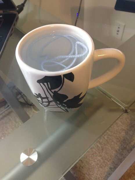 Remojar la cadena en el agua para que la cuerda está mojada.