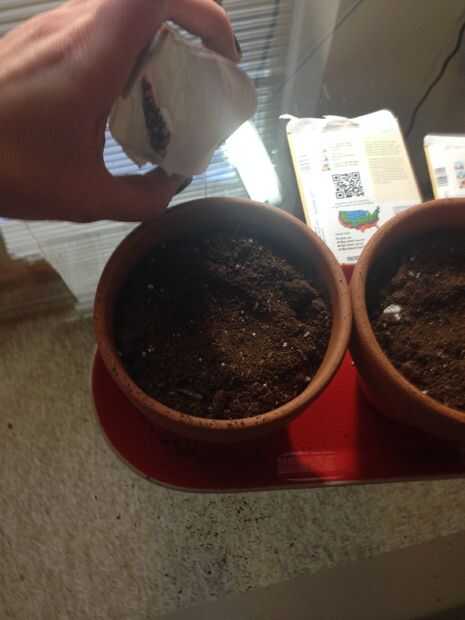Poner unas pocas semillas de cada paquete en el centro de su propio bote. Siga las instrucciones en el paquete de semillas para saber cuántas semillas para plantar. En algunos paquetes, direcciones le dirá a "sembrar semillas fino." Interpreto "fina" como unos cuatro semillas. Si las direcciones de forma explícita cómo la siembra, siembra no más de diez.