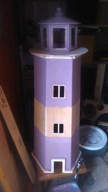 Un jardín faro que hice para mi jardín de unas plataformas, un paquete de palillos del lollipop y un viejo jardín arrojan ventana. Hice una guía paso a paso en video y publicada si alguien quiere tener un ir en hacer uno. Todo para hacer me cuesta £1,50 (coste de los palos de piruleta) porque usé todo lo que pude poner mis manos sobre. La pintura utilizada en él era lo que habíamos dejado de pintura de las habitaciones de los niños pero una vez que ha secado le di varias capas de barniz claro.
