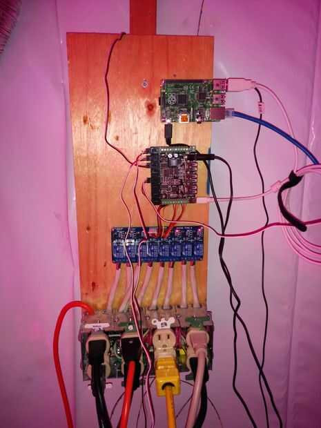Se trata de la huerta hidropónica que empecé hace unos meses en mi sótano. Está automatizado por un Raspbery Pi y algunos tableros de control.