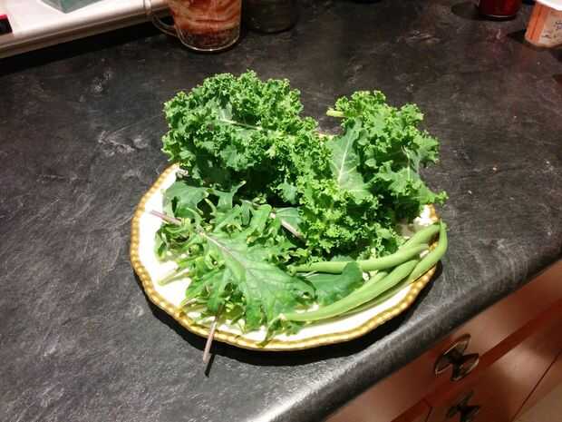 Col rizada, frijoles, tomates, colas de rata de rábano, pimientos, lechuga, radicchio, ruibarbo, perejil y albahaca.