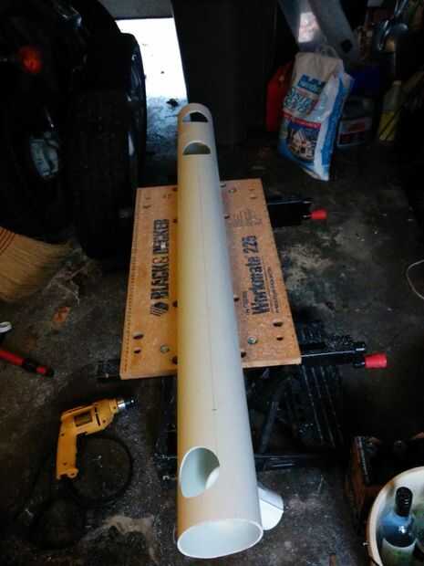 Los tubos son de 4" PVC, que vinieron en longitudes de 10'. Utiliza 2 de estos y cortar 4-4' segmentos fuera de ellos.