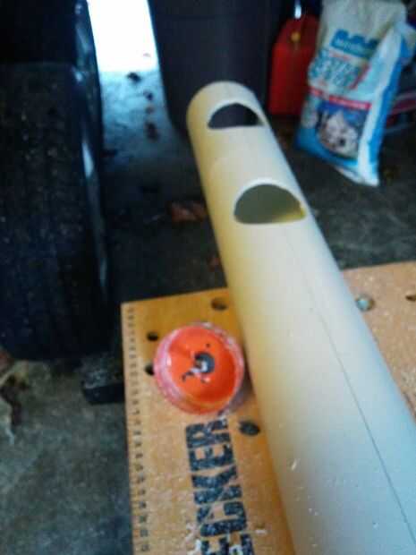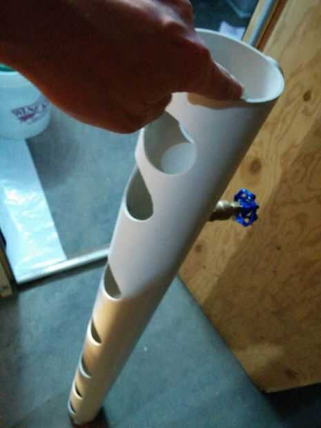 - En el otro lado del tubo, cortar 6-3 pulgada agujeros uniformemente espaciados. Se trata de los agujeros para su planta crece canastas en.
