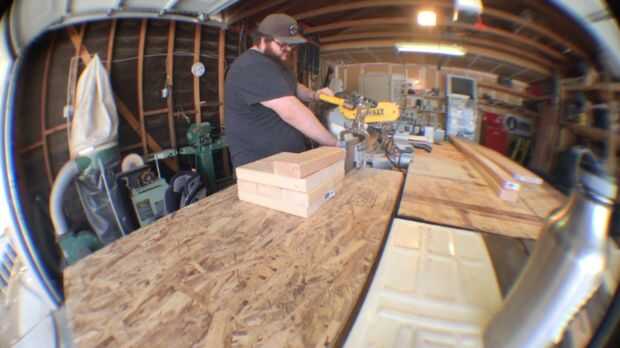 Usé mi sierra para cortar ingletes para cortar las piezas. Configurar un bloque de tope 10 1/2 pulgadas de la hoja y me fui a cortar encima de la ciudad.