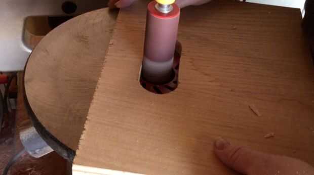 Lijar el interior de los agujeros con mi lijadora oscilante del huso y me redondea los bordes de los orificios sobre con un 1/4 pulgada redonda en mi router.
