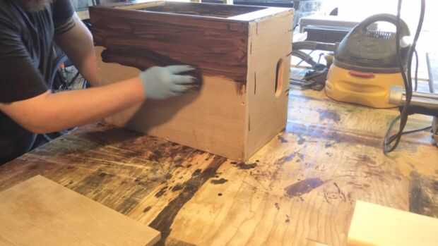 Una vez fue montada la caja de lo arena y me aplica una mancha y la puerta. Después de la mancha apliqué 2 capas de poliuretano.