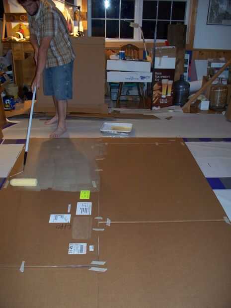 Una vez que tienes tu cola, comenzar pegando en sus láminas de cartón. se encontró que era útil para el diseño de la capa en primer lugar, hacer un montón de marcas de referencia, en términos de cómo cada uno debe alinearse con el otro y luego laminado. Así cuando vayas a colocar un pedazo de cartón, puedes mirar que pones justo antes de él y go, oh que veo, que uno se alinea con la línea, por lo que debe ir aquí. Truco muy sencillo, pero ahorra mucho tiempo y la confusión. Presione firmemente la cartulina en su lugar, pero no demasiado dura, ya que no queremos mellar la hoja y la ruina es integridad estructural.