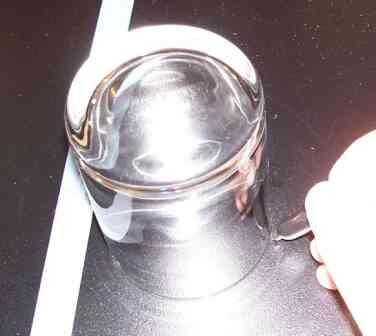 Usar el vidrio y un marcador sharpie para marcar un círculo donde quieres la torre para sentarse. Nota la cinta de la línea marca la línea de refrigerante. Yo estoy marcando el círculo alrededor de 1/4" delante de la línea.