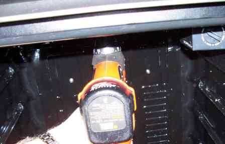 Temporalmente la parte superior hacia atrás en el kegerator, fijación con un tornillo trasero y dos tornillos delanteros. Perforar una serie de agujeros en la parte superior del interior del frigorífico. Siga el borde del agujero nuevo corte cuando taladre los orificios.