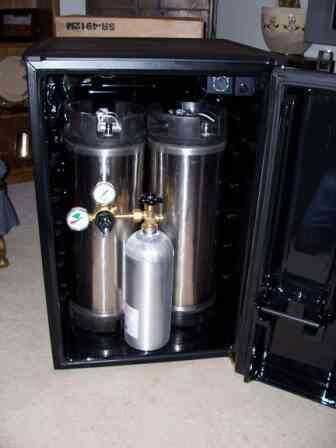 Como veis en la foto, dos barriletes de Cornelius y un tanque de CO2 5 libras caben dentro del refrigerador Sanyo.