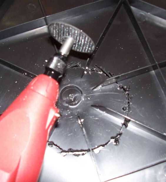 Utilice una herramienta de corte rotatorio o un par de tenazas para cortar las costillas que están sosteniendo el tapón en su lugar.