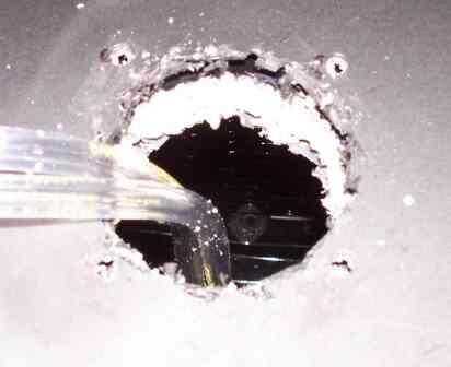 Taladre los cuatro agujeros por la parte superior del refrigerador Sanyo de montaje, asegurándose de que taladra a través de todo el camino hacia el interior.