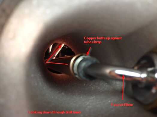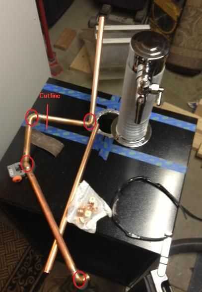 Descargo de responsabilidad: Era muy tarde y estaba unas cuantas cervezas en cuando pensé esto: iba a ser 'inteligente' y ejecución/½ "de cobre tubería desde la torre de proyecto hacia abajo en la nevera y abajo detrás de la placa del congelador ' maximizar ' mi gradiente de enfriamiento. Con tres de 90 y un 45 codo, tratando de empujar (diámetro similar) tubería de cerveza para la torre del proyecto resultó para ser una idea tonta...