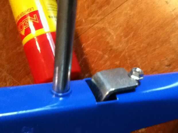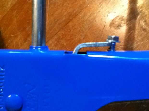 Bien así que ahora que ya tienes las piezas, uno de los de chapa tornillos justo debajo de la palanca de liberación, lo suficiente para alojarte pero asegúrese que el pull-back puede mover muy libremente. Desea el borde de la cabeza para atrapar el lanzamiento de barra para que la barra se puede mover libremente. Ver las fotos a continuación, pero suya puede ser ligeramente diferente.
