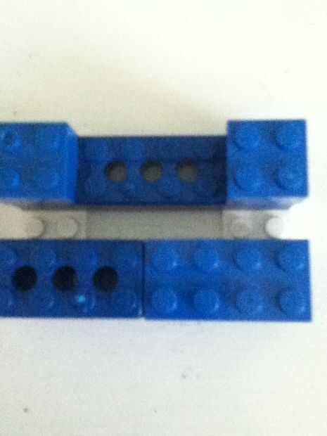 a continuación, obtener una pieza de 2 x 8 y añadir un ladrillo de 2 x 2 a los extremos de la pieza. Esto deja una brecha para el botón de inicio. Tome dos ladrillos de 2 x 8 más y apilarlos uno encima del otro. Añadirlos a los extremos de piezas planas de dos 2 x 4. Asegúrese de que dejaste una boca de 1 x 8 por la mitad longitudinal, con un agujero para su cargador.