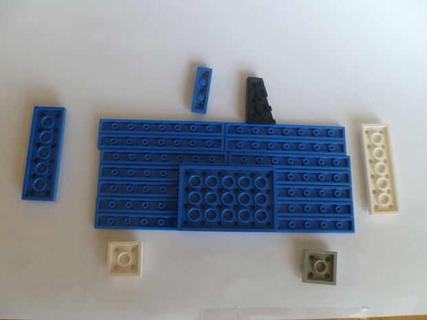 esto es como hacer un Lego Nintendo DSi. He incluido una lista de piezas para hacer un poco más fácil. Primero montar el gris interior de pieza de la base inferior.  Luego Arme el marco azul alrededor de eso.  Rematar con larga plana 2 x 12 piezas. A