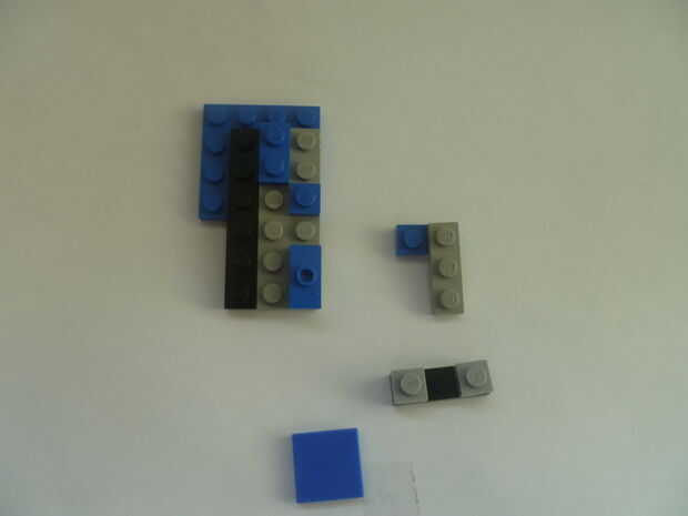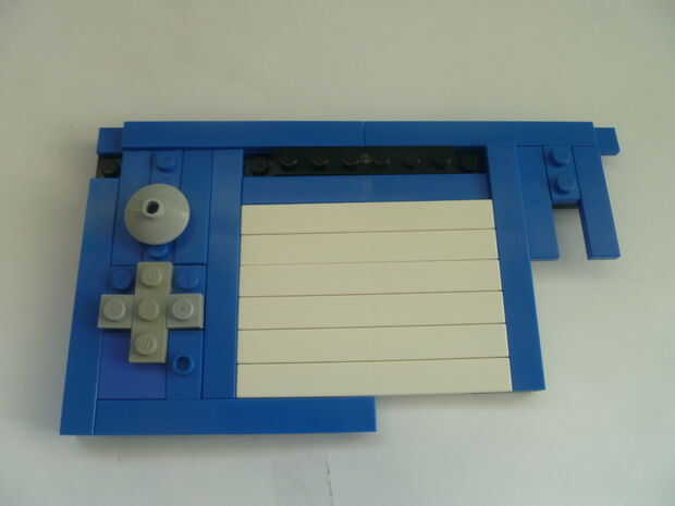 esto es como hacer un Lego Nintendo DSi. He incluido una lista de piezas para hacer un poco más fácil. Primero montar el gris interior de pieza de la base inferior.  Luego Arme el marco azul alrededor de eso.  Rematar con larga plana 2 x 12 piezas. A