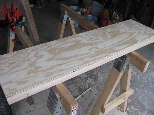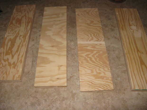 Hacer este proceso a 5 de la licencia de los estantes un 6 pelado, será la parte superior y lo pondremos más adelante, usa el 48 "x 14" pieza de madera contrachapada.