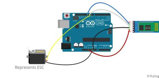 Conectado mi arduino nano para el módulo bluetooth y la ESC para el arduino. ASEGÚRESE DE QUE NO UTILIZAS EL BEC EN LA ESC O CUALQUIER OTRA FUENTE DE ENERGÍA EXTERNA PARA ALIMENTAR EL ARDUINO AL ARDUINO ESTÁ CONECTADO AL ORDENADOR PARA LA PROGRAMACIÓN. PUEDE MATAR EL ARDUINO O PEOR AÚN, SU PUERTO USB DE SU ORDENADOR!