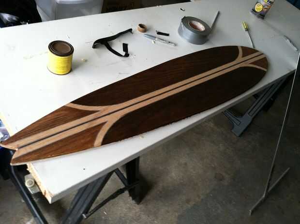 Este paso es opcional, pero la fibra de vidrio será claro y la pintura sea visible. Usé cinta eléctrica para mi diseño del bosquejo. Entonces usé tinta para madera para pintar. Para crear las diferentes tonalidades utilicé tres capas para las partes oscuras y una capa para las partes más ligeras. Después de la mancha se seque, retire la cinta.