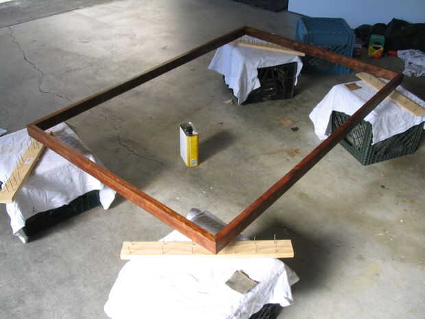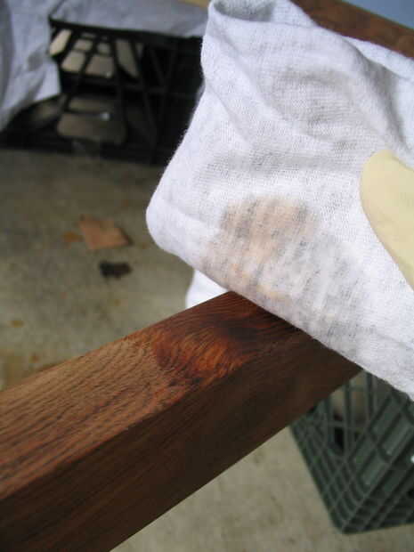 Utilice trapos de tela de algodón (picado hasta pedazos de viejo ropa trabajo bien) para aplicar el aceite. Trabajar con el grano, asegurándose de que todas las superficies están cubiertas uniformemente. Deje que el aceite penetre para limpiar un poco, entonces sus superficies con un trapo limpio. Más capas de aceite se aplica más el brillo que su madera va a desarrollar. He aplicado algo en la gama de la capa de 6-8; vaya hasta que estás aburrido y la madera se ve hermosa.