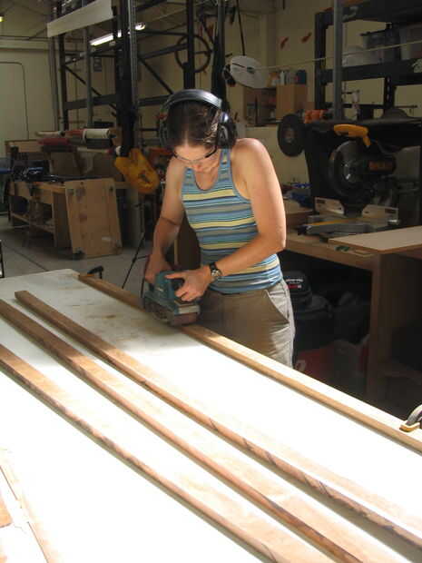 Lije las superficies liso, quitar las rebabas y marcas de quemaduras de la sierra. Comience con grano grueso, (~ 100) y pasar a papel de lija más alto (200-400). Después de que la estructura se ensambla, a terminar la madera con el lijado a mano de papel de lija más.