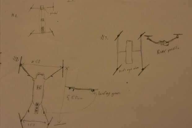 Para un hexagonal simétrica (DIY) o Octa, un par de brazos es generalmente sólido, para proporcionar un soporte para el tren de aterrizaje.