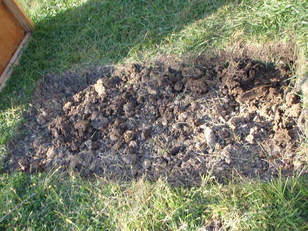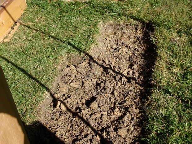 1. use una pala para excavar pequeñas plazas de la tierra. El área de excavar eventualmente será el mismo que el tamaño del marco frío.